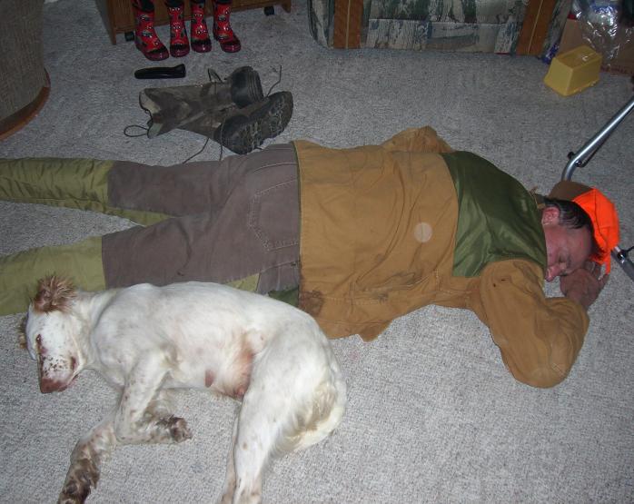 Michelle and her dog J.D. Taking a nap after some.  Hard walking and a good hunt!