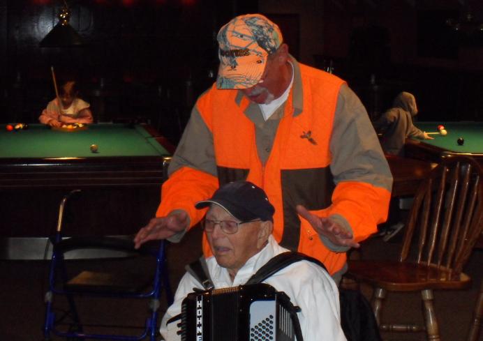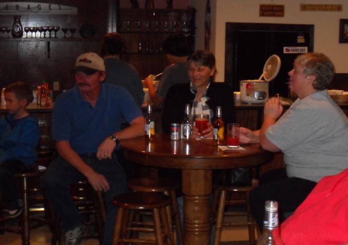 hunting buddies to have something to drink, something to eat, play a game of pool